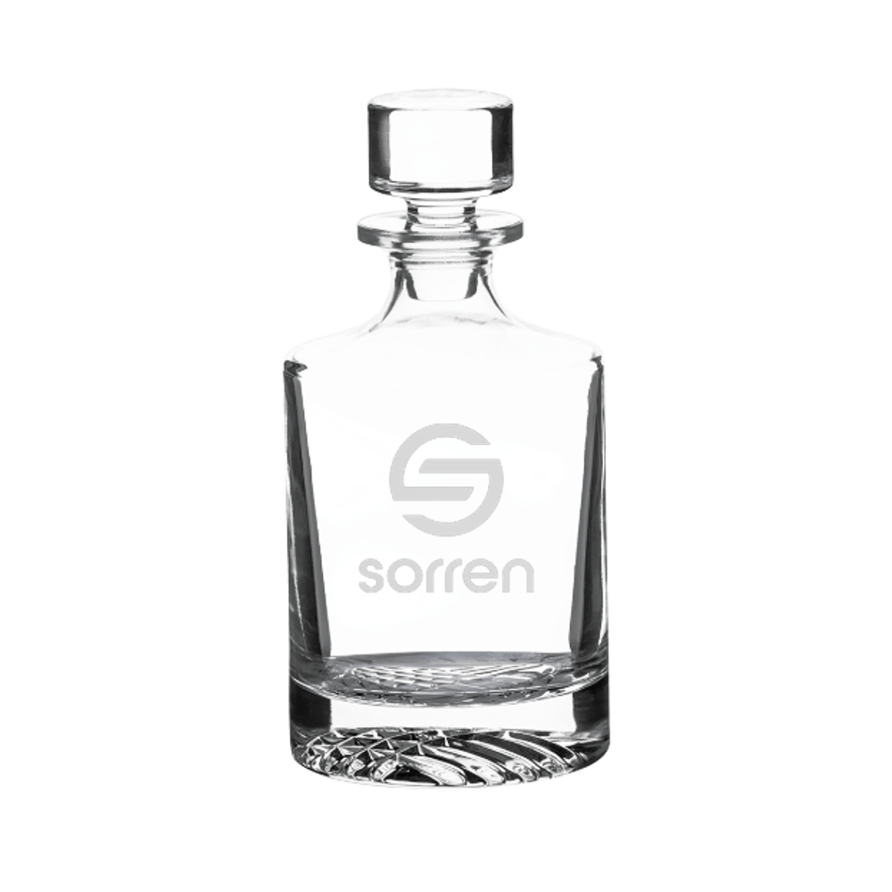 This Decanter glass gift set is crafted from thick, crystal clear glass with an elegant design carved into the base. Each set includes a decanter with a stopper lid and gift box. Perfect for employee gifts, holiday parties, or client appreciation.