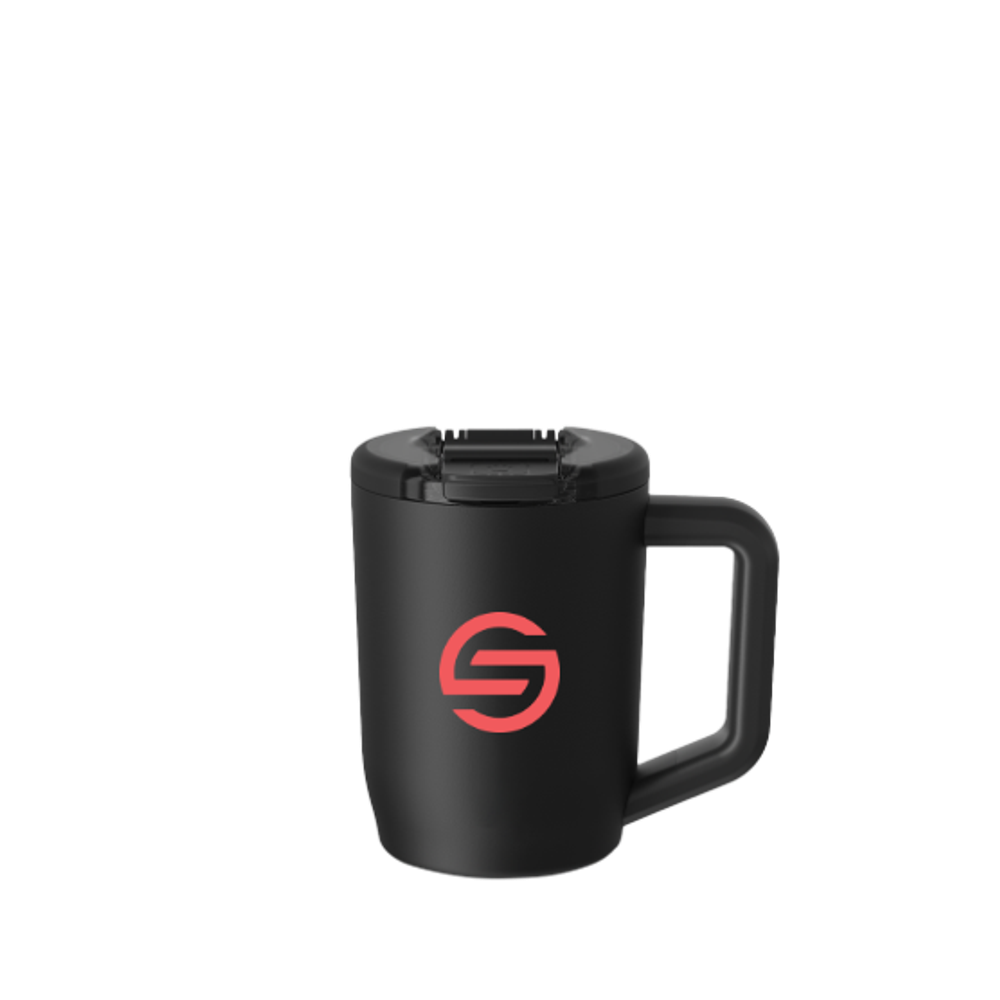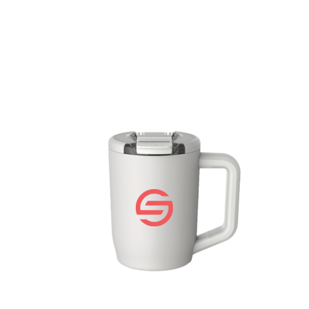 The Brumate Muv 15 oz is crafted with insulated stainless steel that will keep your hot, cold and carbonated beverages cold for over 24 hours and hot for 4. The new OctaLock™ threading system allows for 8 different drinking positions. Easily change between left and right handed orientation by pushing down and turning right. The large soft grip handle allows for a comfortable hold and is scratch-resistant. The non-slip base keeps your mug upright and in place.